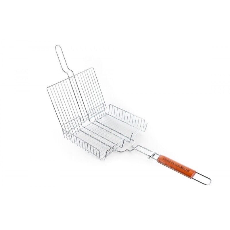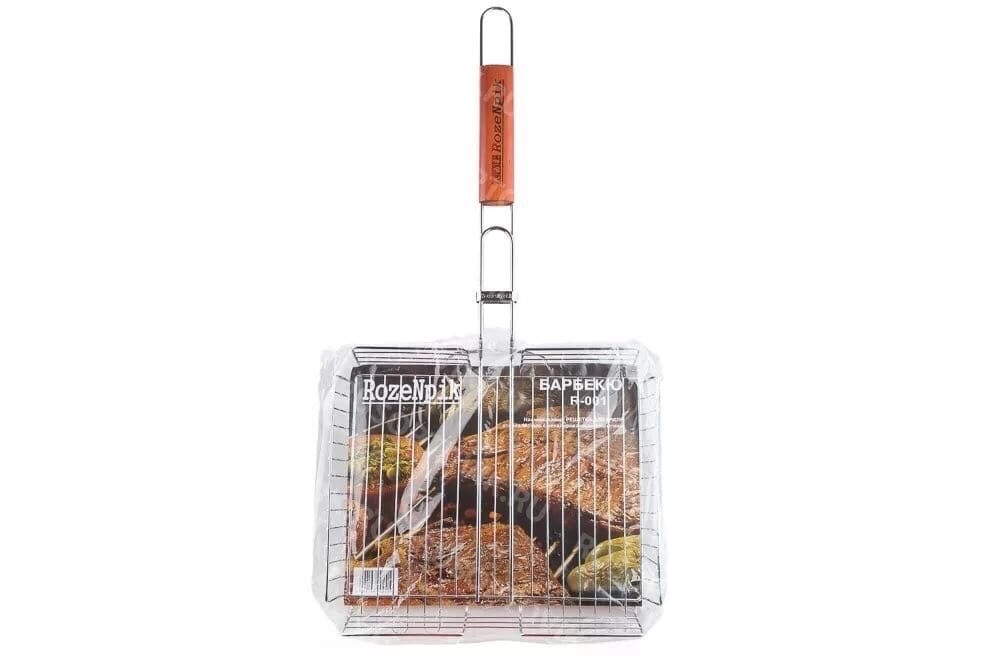 Решетка для гриля и барбекю RoseNpik R-001 – решетка-гриль глубокая, предназначена для запекания мяса, птицы, рыбы. Решетка оснащена фиксирующим кольцом на ручке для фиксирования продуктов при приготовлении, а также удобной деревянной ручкой. Поверхность решетки имеет антипригарное покрытие.Рабочая плоскость: 34 х 25 см