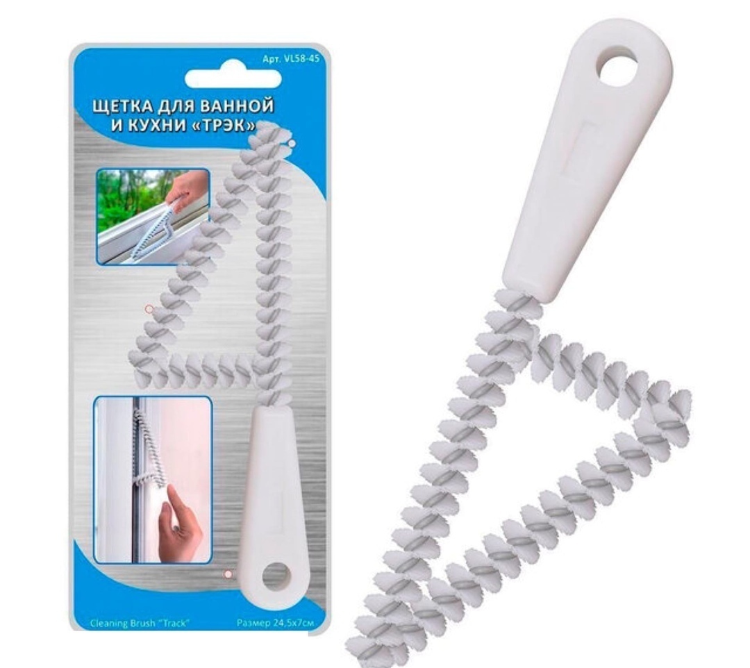 Удобная щетка поможет вам с уборкой в квартире. Благодаря своей форме она справляется с грязью в самых труднодоступных местах. Нанесите моющее средство на загрязненные поверхности, оставьте на необходимое количество времени и удалите грязь с помощью щетки. Благодаря своей упругой щетине, изделие поможет очистить такие поверхности, как плиточные швы и другие стыки, загрязнения в местах крепления смесителей, проемы оконных рам и т.п. После применения промойте щетку в проточной воде и просушите. Изготовлено из пластмассы (полипропилен) и металлической проволоки.