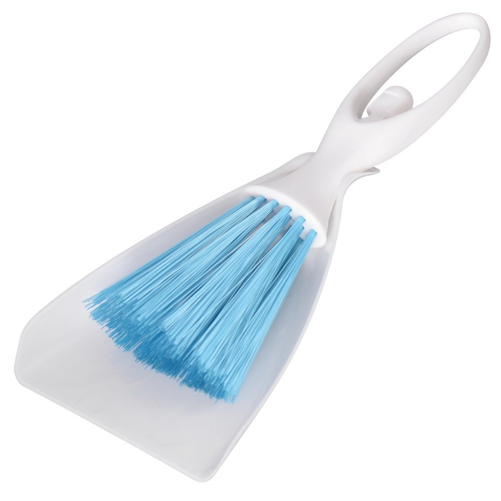 Компактная щетка с совком поможет вам в уборке. Благодаря своим эластичным щетинкам, щетка эффективно удалит крошки со стола и другой мелкий мусор с любых поверхностей. Используйте удобный совок для сбора мусора. Щеточка вставляется в совок с помощью специальных пазов, благодаря чему изделие всегда будет в комплекте и не потеряется. Оригинальный дизайн щетки позволяет подвесить ее на любой крючок или гвоздик. Изготовлено: пластмасса . Размер: щетка 21х7х3 см. совок 16х11,5х3