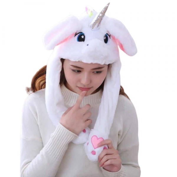 Шапка светодиодная Кигуруми с подвижными ушками единорог белый