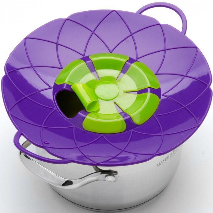 Просто закройте ею кастрюлю с водой, а можете даже использовать Невыкипайку в качестве пароварки. Положите на крышку овощи и прикройте ее обычной крышкой со стандартной кастрюли. Через несколько минут ароматные овощи на пару будут готовы. А если Вы не хотите отмывать плиту от брызг масла, просто выверните крышку в обратную сторону, освободите ее от лепестков и накройте сковородку.