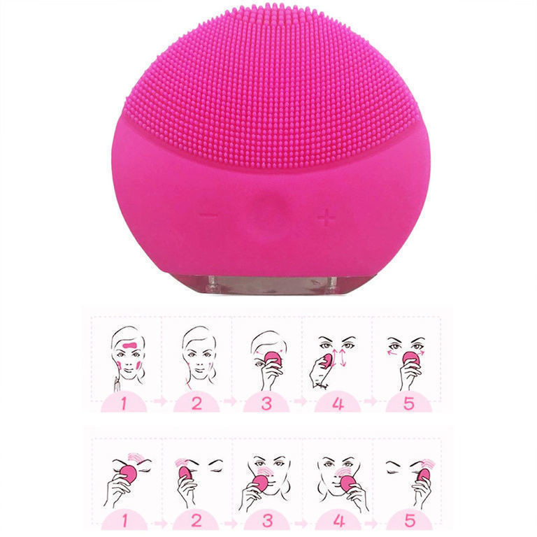 Водоустойчивая электрическая щётка для ухода за кожей лица. Прибор не только нежно отшелушивает мертвые клетки кожи, откупоривает поры и удаляет загрязнения, но и предотвращает появление первых признаков старения. С одной стороны щетка предназначена для чистки. Благодаря секретной технологии маленькие щетинки вибрируют (а не крутятся), тем самым бережно и эффективно удаляют кожный жир и остатки макияжа, не растягивая кожу. Ко всему прочему, такой процесс очищения улучшает впитываемость следующих средств по уходу, таких как крем и сыворотка. Кстати, у устройства можно регулировать интенсивность очищения (от мощного и глубокого до более мягкого и нежного).