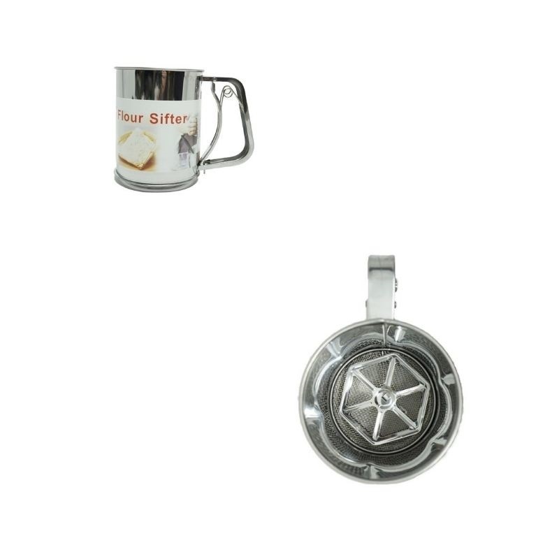 Кружка-сито изготовлена из высококачественной нержавеющей сталис зеркальной полировкой.Удобный механизм с рычагом на ручке позволяет быстро и эффективно просеивать муку.
