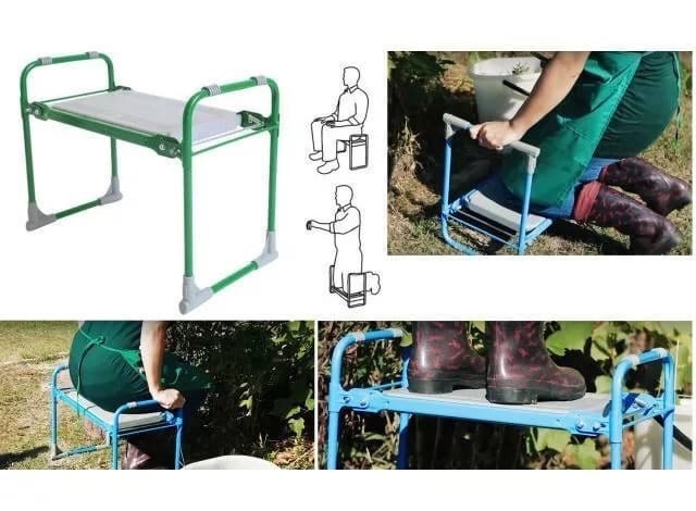 Скамейку можно использовать в двух положениях, в сидячем положении высота составит 33 см, эта высота оптимальна для работы на огороде с растениями любой высоты. При необходимости скамейку можно перевернуть и встать коленями на сиденье, высота составит 13 см. На таком уровне очень удобно пропалывать, прореживать или производить другие работы в саду. При этом ваши колени не касаются земли, соответственно не пачкаются, нет вероятности простудится, а благодаря мягкому сиденью колени не устают.