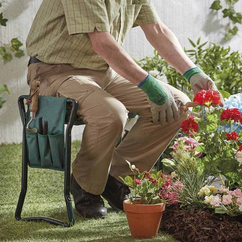 ✦ Наличие прочных боковых поручней дают опору рукам и помогают легко встать или сесть, снимая нагрузку с колен и спины, что очень важно для пожилых людей особенно при работе в огороде.