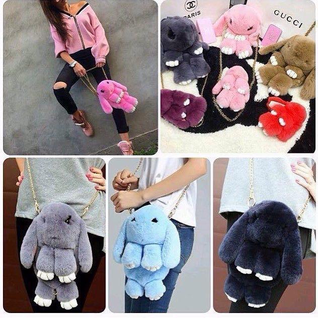 Сумка кролик (зайка) — отличный способ выделиться из толпы, показав свой великолепный вкус. Благодаря сумке в виде мехового зайчика, вы будете выглядеть очень стильно и модно в этом сезоне. Действительно, такая сумка в виде милого кролика с длиннющими ресницами никого не оставит равнодушным и вы всегда будете в центре внимания. Сумка может носиться как рюкзак, для этого у сумки есть специальные колечки для крепления цепочки.