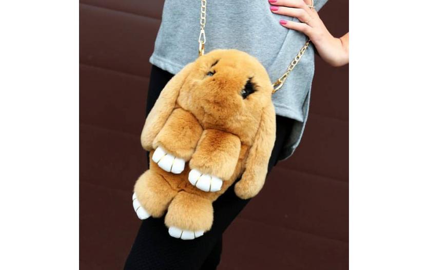 Сумка кролик (зайка) — отличный способ выделиться из толпы, показав свой великолепный вкус. Благодаря сумке в виде мехового зайчика, вы будете выглядеть очень стильно и модно в этом сезоне. Действительно, такая сумка в виде милого кролика с длиннющими ресницами никого не оставит равнодушным и вы всегда будете в центре внимания. Сумка может носиться как рюкзак, для этого у сумки есть специальные колечки для крепления цепочки.