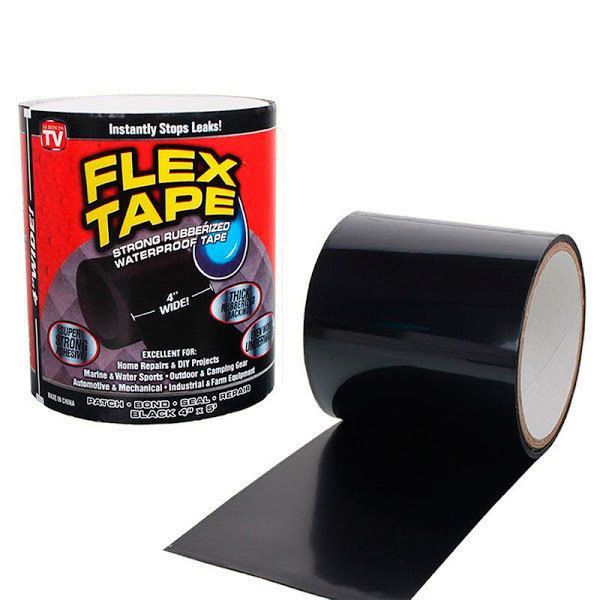 Клейкая лента Flex Tape – эксклюзивная новинка из семейства скотчей, моментально устраняет дефекты, эффективна и легка в применении. Сферы использования – самые разнообразные, от мелких домашних и офисных починок до быстрого устранения щелей и пробоин при авариях.