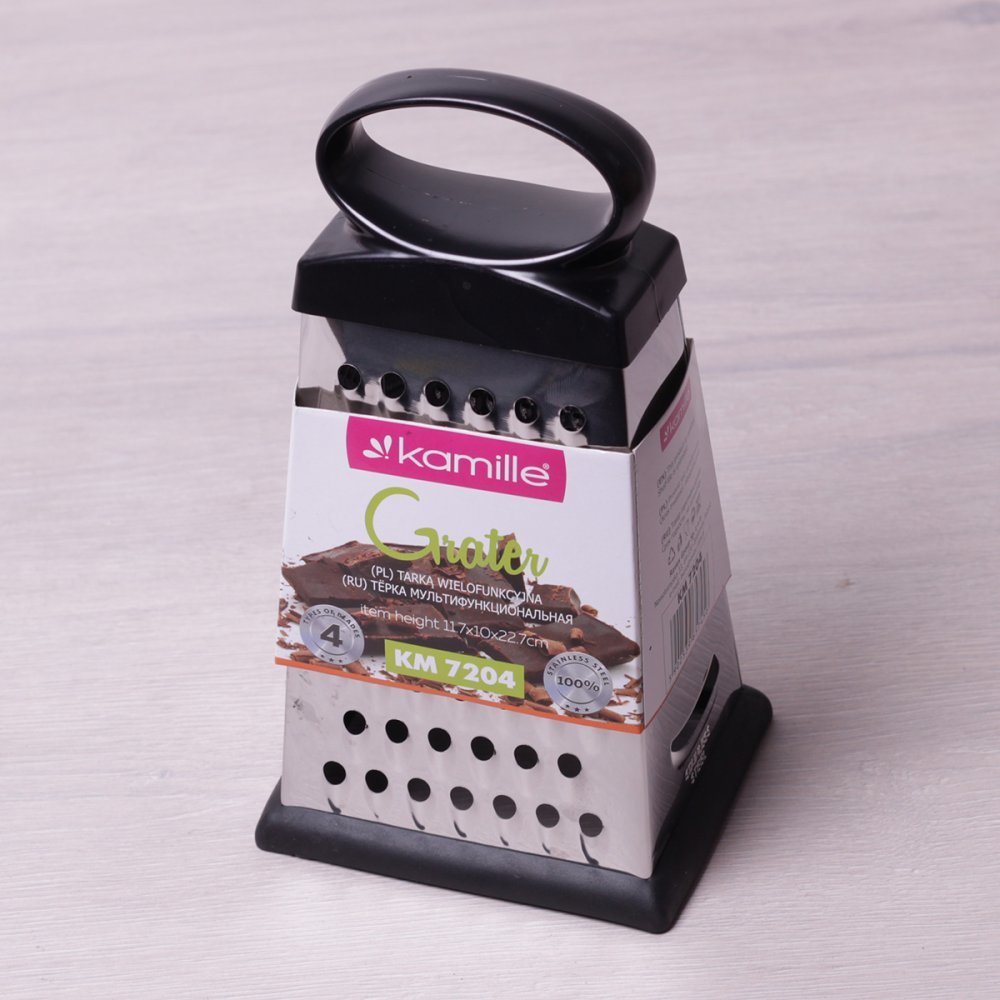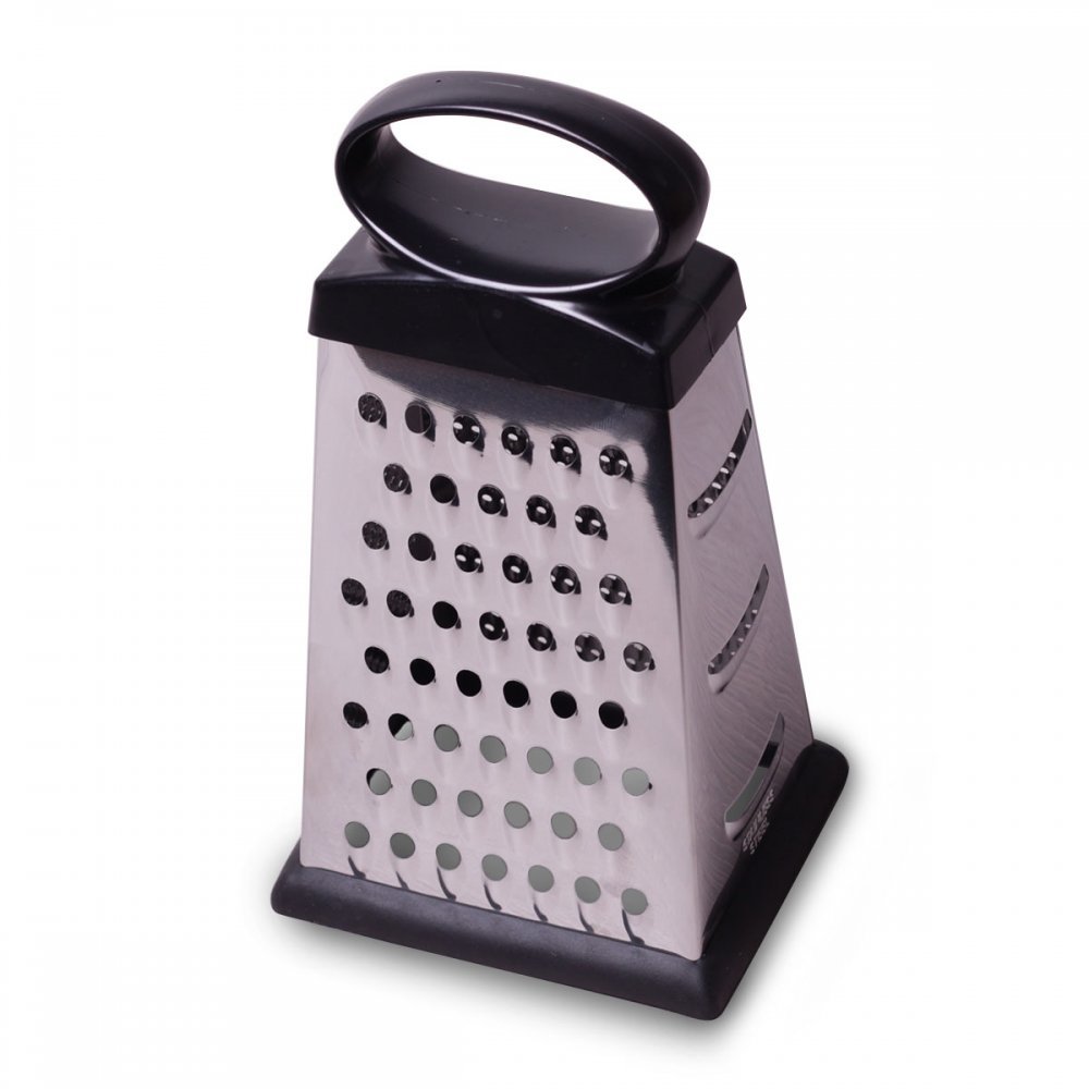 Тип: терка-пирамида. Материал: нержавеющая сталь. Количество трущих/режущих поверхностей: 4. Ручка: есть. Материал ручки: пластик. Основное назначение: многофункциональная. Наличие контейнера (поддона): нет. Антискользящее основание: да. Подходит для мытья в посудомоечной машине: да. Упаковка: ярлык, пэ-пакет.