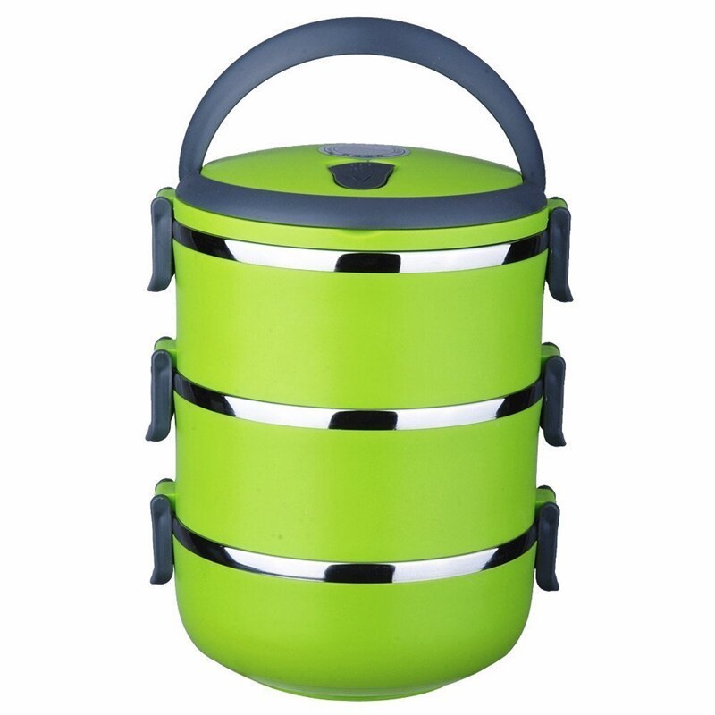 Термо ланч бокс тройной - практичный выбор для активных людей, следящих за своим питанием. Наличие трех отдельных контейнеров позволяет одновременно взять с собой несколько различных блюд. Удобный ланч бокс выполнен из 3 слоев, сохраняет температуру продуктов в течении длительного времени. Специальная прорезиненная окантовка и плотно закрывающиеся клипсы на крышке делают емкость полностью герметичной. Ланч бокс легко переносить благодаря удобным складывающимся ручкам.