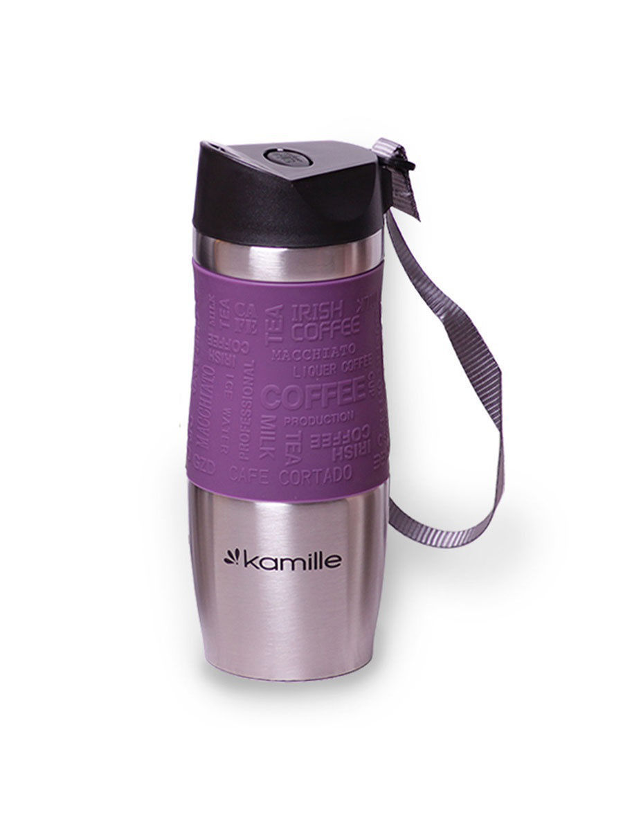 Тип термоса: питьевой. Материал корпуса: нержавеющая сталь, мягкая TPR-накладка. Материал колбы: нержавеющая сталь. Материал крышки: пластик. Объем: 480мл. Высота: 23.5см. Съемный клапан: нет (встроен в крышку). Ручка: нет. Поверхность: глянцевая. Время сохранения температуры: 6-8 часов. Дополнение: полиэстеровый ремешок с регулируемой длиной. Варианты цветов: бежевый, серый, голубой, фиолетовый. Упаковка: картонная коробка 8*8*24см.