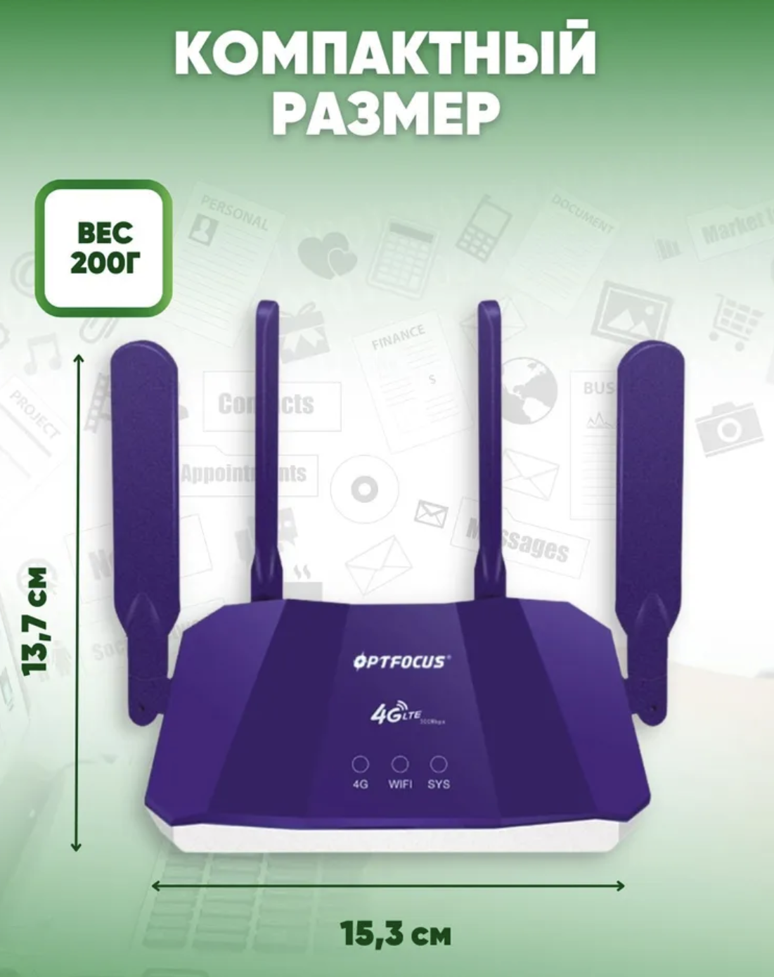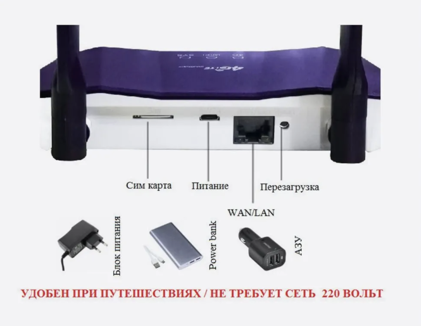 Точка доступа роутер со встроенным модемомWifi РОУТЕР 4g имеет стильный эргономичный дизайн, 4 антенны, цвет фиолетовый. Он очень прост в использовании и не потребует особых навыков для настройки.