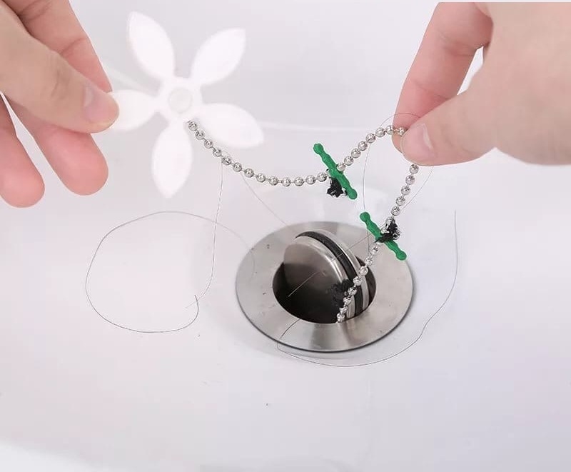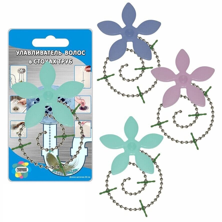 Улавливатель волос в стоках труб — незаменимый помощник в борьбе с засорами. Оригинальное приспособление не только поможет справиться с засорами в стоках труб, но и украсит раковину, ванную или душевую кабину декоративным элементом. Достаточно опустить цепочку в отверстие, а цветочек оставить снаружи. Таким образом волосы и другой мусор будут задерживаться на цепочке и силиконовых ограничителях, предотвращая засоры в трубах. По мере загрязнения необходимо очищать цепочку и снова опускать ее в стоковое отверстие для улавливания мусора. Изготовлен из металла и пластмассы (полипропилен, силикон).