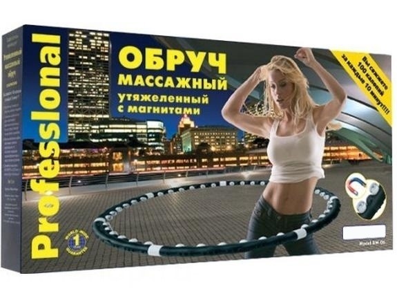 К обручу прикреплены специальные массажные магнитные вставки, которые, во время вращения делают глубокий аккупунктурный массаж, разминают тело, способствуют улучшению кровоснабжения и ускорению жиросжигательного процесса. Под воздействием магнитного поля улучшается местное кровообращение и доставка к тканям и внутренним органам кислорода. Утяжеленная конструкция позволяет провести более интенсивную тренировку. Благодаря разборной конструцииобручь легко транспотируется. Вес конструкции легко регулируется: достаточо просто вынуть металлические шарики из массажных шариков.