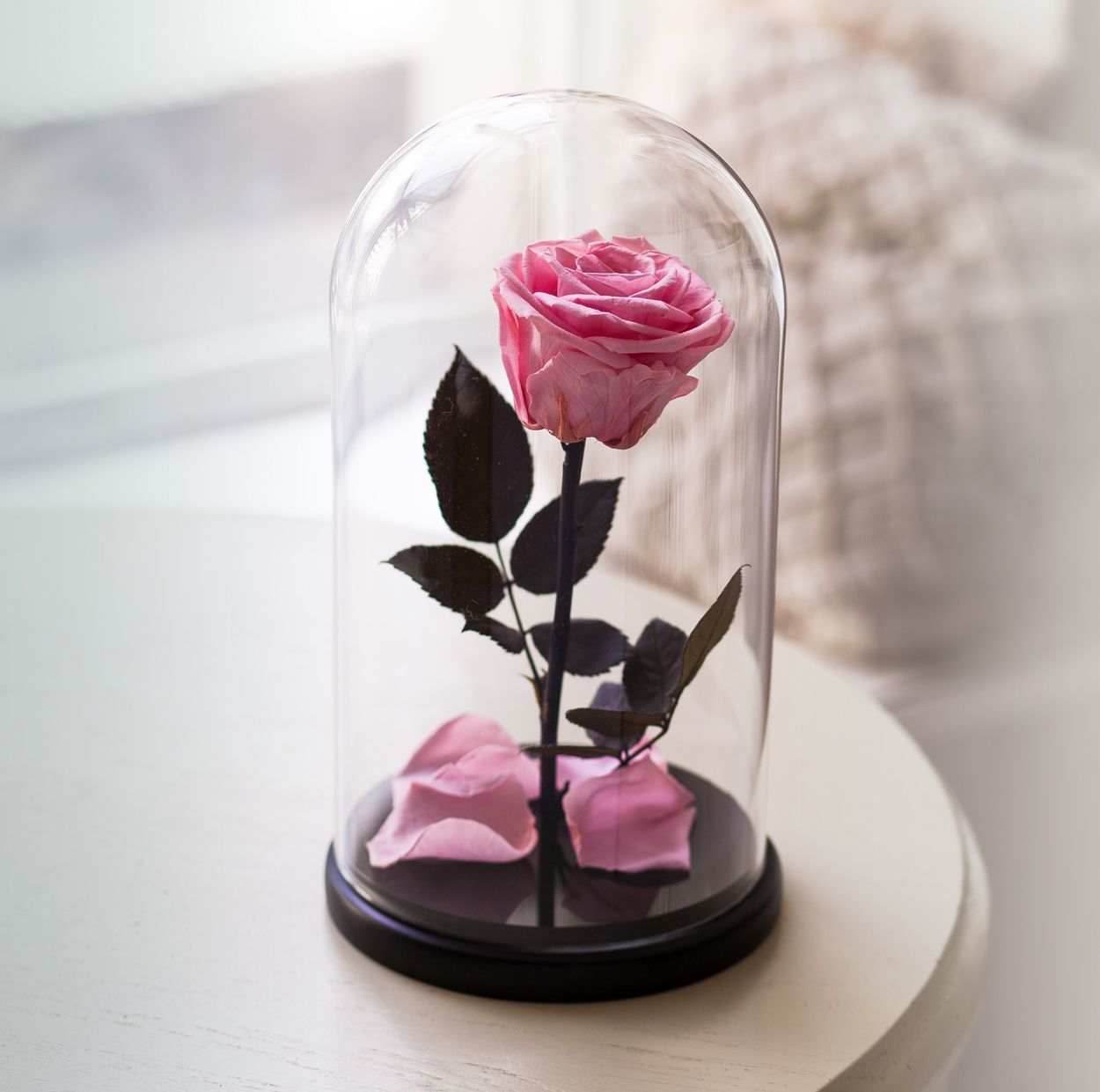 Вечная роза в стеклянной колбе розовая (Премиум)