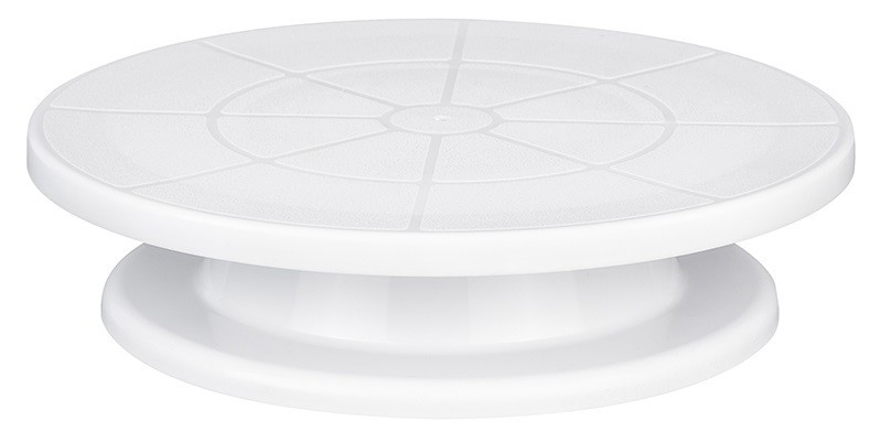 Вращающая подставка позволяет легко украсить выпечку, показать ее во всей красе и одновременно облегчить доступ к лакомству. Кроме того, крутящаяся подставка для торта позволяет разглядеть десерт со всех сторон,становясь таким образом как инструментом для кондитера, так и элементом сервировки.